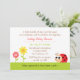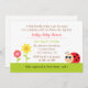 Adorable personalizado de un bebé insectos rojo y negro con grandes ojos de cortesía caminando por el jardín. Los corazones reemplazan las manchas negras tradicionales de la mariquita. Una flor amarilla y rosa como decoración se añade a la sensación de primavera y felicidad. Este kawaii y su diseño alegre lo convierten en el lugar ideal para recibir invitaciones para una ducha o invitaciones para bebés, dejando una maravillosa impresión a sus huéspedes. El fondo se puede cambiar al color de su elección utilizando la opción de fondo en modo de personalización. Invitar puede ser fácilmente personalizado con los detalles de su fiesta. Se ofrecen favores de ducha para bebés. Diseñado por Rusty Doodle.