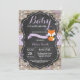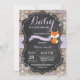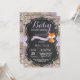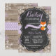 Bebé es frío fuera de la invitación de Baby Shower Rustic Winter Fox. Copo de nieve púrpura. Fondo de pizarra de madera rústica. Barn Retro de la Vintage del País. Invitación de chica Baby Shower. Invitación Baby Shower de feriado de invierno. Copos de nieve azules y blancos. Para una mayor personalización, haga clic en el botón "Personalizar" y utilice nuestra herramienta de diseño para modificar esta plantilla.