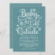 "Baby it Cold Outside" Navidades plantilla de diseño de invitaciones para fiestas incluye un diseño de tipografía de escritura blanca con acentos de copos de nieve y estrellas y texto de celebración que se puede personalizar con tu redacción preferida. Se puede personalizar el color verde/azul del hielo verde azulado.