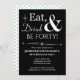 Invite a amigos y familiares a que te ayuden a celebrar tu 40 cumpleaños con esta divertida invitación retro blanca a la fiesta de "Comer, beber y ser cuarenta!".