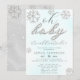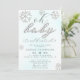 Una plantilla de invitación simple, moderna, elegante y de moda neutra para una ducha de bebé con un fondo blanco de invierno y textura, la palabra BABY cubierta con diamantes de imitación (diamantes de imitación no reales, este es un efecto digital) y en escritura moderna de caligrafía, tipografía moderna y algunos diamantes de imitación cubiertos con copos de nieve. Una moda, un diseño atemporal para una futura mamá que está celebrando su ducha de bebé en los meses de invierno, noviembre, diciembre o enero o incluso más allá, ¡siempre y cuando haya nieve!
