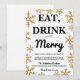 Comer Bebida Y Ser Feliz Fiesta De Navidad Dorado Copos De Nieve