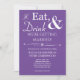 Va a ser un boda divertido, así que ponte el escenario con esta divertida invitación de boda retro morado y blanco. Esto es perfecto para un boda casual en el patio trasero.