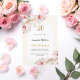 Marco de arco blanco y fondo beige suave de color crema. Decorado con flores rosas y arcos beige. Personalice y agregue un nombre, edad y detalles.