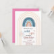 Invitación Beige Blue Simple Boho Rainbow Baby ducha