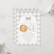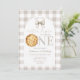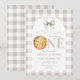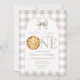 Celebrate your little one’s first birthday with this elegant neutral “Cutie Pie” invitation featuring a soft beige gingham background, watercolor pie illustration, and a delicate satin bow detail.