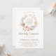 Invitación beige pink flowers Eucharist First Communion