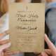 Invite a sus invitados a una ocasión especial con esta clásica invitación rústica mínima para la Primera Comunión Sagrada de un niño. Con un diseño limpio e intemporal, esta invitación exubera elegancia y simplicidad, lo que lo hace perfecto para una celebración sofisticada. Personalice con sus detalles del evento para crear un conservador refinado y memorable para este importante hito.