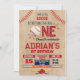 ¿Listo para una fiesta de cumpleaños deportiva? Este diseño presenta un fondo blanco clásico pintado a mano, texto azul marino y rojo, un béisbol, estrellas, un casco con ilustraciones de murciélago y bola, y tipografía de "Golpeando al grande" y "Armando sobre". ¡Todo el texto es editable en esta invitación de cumpleaños y también hay postales económicas disponibles! Este diseño es para cualquier edad, neutro en género, y es completamente personalizable para el primer cumpleaños, el segundo cumpleaños y los niños mayores. Encuentra artículos coincidentes en mi tienda.