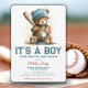 Invitación Béisbol Teddy Bear Watercolor Boy Baby Shower