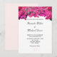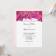 Flores de buganvilla elegantes en Invitación de Boda blanca. La parte trasera tiene dos corazones en fondo de rosa dorada clara. Las flores de buganvilla son acogedoras y hermosas. Tarjetas de invitación de boda floral.