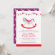 Caballo de mecedora morado y rojo pintado a mano con estrellas y afiches gráficos, invitaciones tardías a la ducha de bebé. Ideal si se le ha escapado la ducha de bebé debido a circunstancias imprevistas, incluye un rápido encuentro con el recién nacido (si es necesario). Hay otros elementos coincidentes disponibles. Original y caprichoso hobby de bebé mecedor de caballos acuarela pintura y diseño gráfico de Sarah Trett para www.mylittleeden.com en Zazzle.