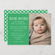 Invitación Bendición del bebé verde y blanco de la foto de un