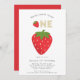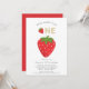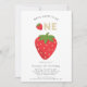 Simple berry minimalista dulce para ser una invitación temática de primer cumpleaños que incluye una gran fresa en el centro sobre un fondo blanco crujiente con el texto que dice berry dulce para ser uno , si tiene algún problema con este diseño entonces por favor contacte janine a través del botón de mi tienda mensaje de sauce estudio de primavera y estará encantado de ayudarte.