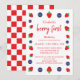Berry dulce 1ª invitación de cumpleaños con fresas y arándanos con un fondo de picnic de pizarra.