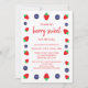Invitación de cumpleaños dulce de Berry con fresas y arándanos con un fondo de picnic de pizarra.