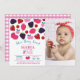 Berry Sweet One First Birthday Chicas de primer cumpleaños Fruta rosada Birthday - Diseño de invitaciones de primera fiesta perfecto para un chica o un niño. Atrás incluido.