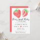 ¡Berry Sweet Baby está en camino! La invitación a la ducha de bebé de este moderno chica incluye hermosas fresas acuáticas y una mezcla de escritura moderna a mano y tipografía simple para su información. El reverso presenta un fondo rosado simple. Fácil de personalizar haciendo clic en el botón "Personalizar".