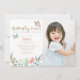 Dulce tarjeta de plantilla de invitación para fiestas de cumpleaños con mariposa color de agua rosa y menta con falso jardín floral de oro. El texto de arriba dice "besos de mariposa y deseos de cumpleaños". Perfecto para un fiesta chica en primavera. También puedes añadir la foto de tu hija.