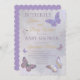 Dulce lavanda y dorado "Besos de mariposa y Deseos del Bebé" diseño chica de Baby Shower con mariposas en varias combinaciones de colores coordinadas en un fondo acuarela de color claro y rosa. Diseño compuesto por Holiday Hearts Designs.