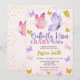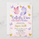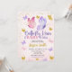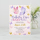 Celebra la alegría de la llegada de tu pequeño con esta invitación de baby shower, con mariposas en rosa, púrpura y dorado en acuarela.