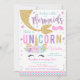 Besos y unicornio desean una invitación a unicornio para el cumpleaños de la sirena