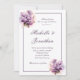 La invitación a bodas cristianas representa un marco con hermosas acuarelas florales de lila. Presenta la inspiradora Canción Verse de la Biblia de Salomón 3:4, "He encontrado al que ama mi alma". Buena elección para bodas de primavera y verano.