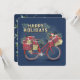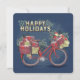 Una bicicleta roja brillante llena de prezzies, ¡sólo la manera de enviar cálidos deseos a los vecinos, amigos y familia! El panel de personalizable de la parte posterior se ilustra completamente para que pueda agregar mensajes o detalles de eventos.