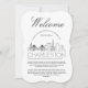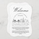 Una tarjeta de detalles para invitados única, personalizada para el invitado de tu boda que viaja para verte en la hermosa ciudad de Charleston, Carolina del Sur. Cuenta con una ilustración moderna de estilo deco del horizonte de la ciudad en la parte delantera, seguida de espacios para la información de tu día de boda en la parte trasera. Todos los elementos de este artículo están desbloqueados y son ajustables para satisfacer tus necesidades. Diviértete haciéndolo tuyo.
