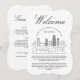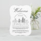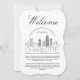 Una tarjeta de detalles para invitados única, personalizada para el invitado de tu boda que viaja para verte en la hermosa ciudad de Charlotte, Carolina del Norte. Cuenta con una ilustración moderna de estilo deco del horizonte de la ciudad en la parte frontal, seguida de espacios para la información de tu boda en la parte trasera. Todos los elementos de este artículo están desbloqueados y son ajustables para adaptarse a tus necesidades. Diviértete haciéndolo tuyo.