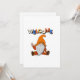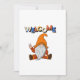 Gnome sentado con el signo de la paz y la colorida tarjeta de mensaje de bienvenida para cualquier ocasión y cuando quiera enviar algo único.