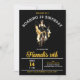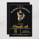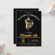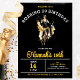 La invitación a la fiesta de cumpleaños moda Roaring 20 incluye un chica flapper bailando en el centro. La llamativa combinación de colores negro, dorado y blanco seguramente generará emoción cuando los huéspedes reciban su invitación.