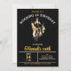 La invitación a la fiesta de cumpleaños moda Roaring 20 incluye un chica flapper bailando en el centro. La llamativa combinación de colores negro, dorado y blanco seguramente generará emoción cuando los huéspedes reciban su invitación.