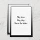A simple, fun, Save the Date photo card template in black and white template that you can personalize. Unique, modern and not your every day invitation. Black border.