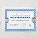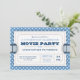 Invite a todo el mundo a su cumpleaños Noche de la Película con esta divertida invitación diseñada como un boleto de admisión de películas. Billete blanco, con texto en azul sobre un divertido fondo azul con motivos polka dot. También disponible en una variedad de combinaciones de colores adicionales.