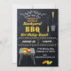 ¡Simplemente no puedes perderte esta invitación imprescindible para tu evento de cumpleaños BBQ! El diseño rústico de pizarra negra con una parrilla destacada y utensilios de cocina hará que sus huéspedes se sientan impresionados.