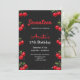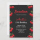 Invitación Birthday invitation black back in cherries theme