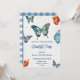 Birthday invitation featuring colorful butterflies with sparkling effects, set against a white background. Text invites guests to a 5th birthday party.