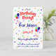 Birthday Party Invite Card with balloons and confetti. Customizable text is ready for you to personalize for your event!