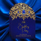 Invitación Birthday Party Royal Blue Gold Lace Diamonds Gems