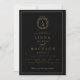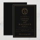 Invitación Black and gold botanical crest monogram wedding