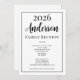 Enjoy the ease of this Black and White Family Reunion Modern Simple Invitation. Customize the back with a photo or color. Easy to change the name, date, time, location, and contact information. If you are not having a potluck, simply remove the last line, or recommend other options, like desserts, picnic blankets, or games.