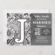 Invitación Black and White Monogram J Tattoo Flowers Wedding