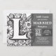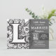 Invitación Black and White Monogram L Tattoo Flowers Wedding