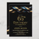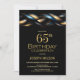 Invitación Black Blue Gold Fiesta de cumpleaños número 65