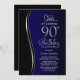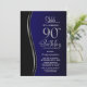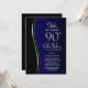 Invite a sus amigos y seres queridos con esta moderna invitación a la fiesta de cumpleaños número 90 de color negro y azul. El área de texto de personalizable de esta plantilla de invitación le permite incluir sin esfuerzo todos los detalles necesarios para su celebración especial de cumpleaños, incluyendo la fecha, hora, lugar e información de RSVP. Hay una variedad de tipos de papel y estilos de esquina disponibles para sus invitaciones únicas, junto con la opción de descargar si prefiere un formato digital.