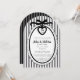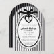 These anniversary party invitations have a black bow scalloped frame on a striped background. You can personalize with monogram letters, name and date.