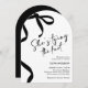 bandejas atadas de nudo, invitación a la bachillerato del arco negro, coqueta color de agua, cinta linda, caprichosa, dibujada a mano, elegante, moderna, minimalista, escritura a mano, moda, tipografía, simple, mínima, moda, invitación a la ducha de novia con el arco negro, ella ató la ducha de nudo, elegante, clásica invitación a la ducha de novia, arcos, negro y blanco, novia