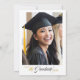 Elegant black calligraphy on a white background with a custom photo, graduation party invitation.