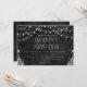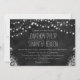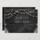© Sunny Mars Designs. Colas de luces Invitaciones a la boda de Chalkboard - Elegante, moderno, elegante, elegante, de moda, personalizable de moda formal o lindo e informal invitaciones a la boda de 7" x 5" con un hermoso diseño de pizarra negra con bombillas de cuerda o de cuerda colgadas encima con un diseño tropical floral debajo.